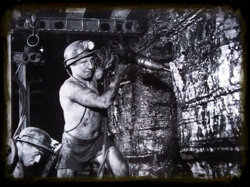 Een historische opname van het mijnwerkerskoor in de ondergrond